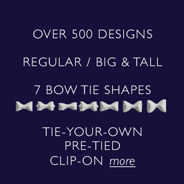 DESIGNED AND HANDMADE IN AMERICA | We are the bow tie experts! Not only are they made by us in Maryland, we design the bow ties and conduct quality control tests on all the materials as well as the finished goods. For more than 30 years every aspect of the bow tie has been researched and incorporated into its design and manufacture. We are proud to put our label on each and every American Made Bow Tie we sell! No matter your bow tie preference we’ve got you covered with 7 different shapes available. Almost all these sizes are available as pre-tied bow ties, clip-on bow ties and self tie bow ties. |