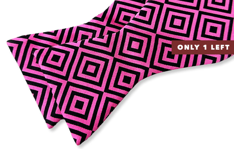 All our bow ties are Made in America by the Club! Not only are the bow ties made by us in Maryland, we design the bow ties and conduct quality control tests on the cotton, wool and silk as well as the finished bow ties. For more than 31 years every aspect of the bow tie has been researched and incorporated into its design and manufacture. We make the best bow ties you can buy in over 600 designs. The bow ties are made as 1 in stock and 6 Custom Bow Tie sizes. Many designs are available as pre-tied bow ties, clip-on bow ties and self tie bow ties. Although the majority of what we sell are men's bow ties we have gained quite the following of female bow tie wearers as well!