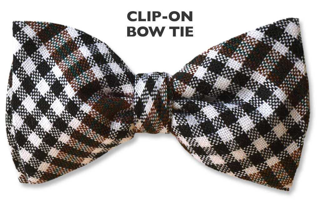 Our Burns Check Tartan was created in honor of the great Scottish poet Robert Burns. Although a fairly modern tartan it has been hugely popular since its creation back in 1959. The smaller pattern is particularly fitting for a bow tie and especially striking in tones of black, brown and white. You might even find yourself humming a few lines from Robbie Burns "Auld Lang Syne" while wearing his handsome tartan!
