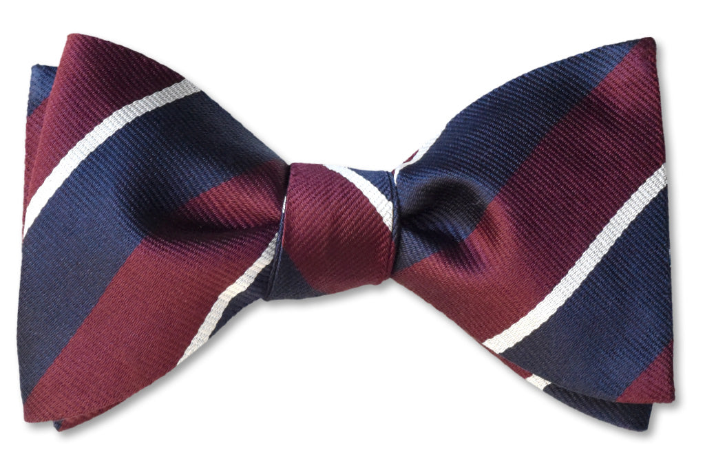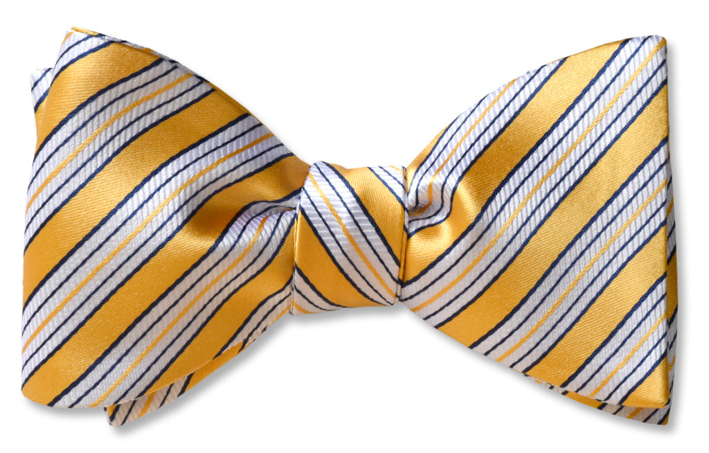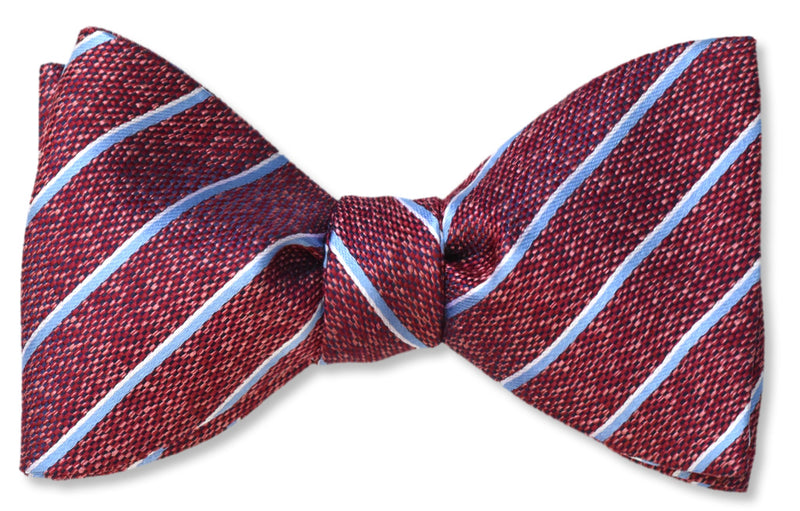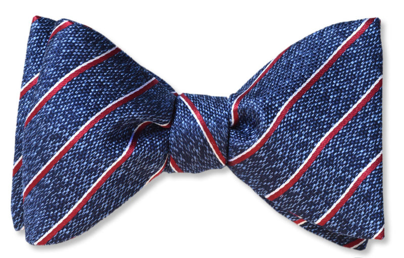 We have over 100 woven striped bow ties for your viewing and wearing pleasure! Our repp stripe bow ties are woven in England in a 300 year old mill then made by us into bow ties. There is no tougher wearing stripe bow tie on the planet!