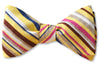 What warm and wonderful colors are displayed in this lively cotton striped bow tie. The red, white, cobalt blue, brown and yellow will play so well with any summer outfit.
