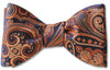 A princely paisley aptly named after the Father of Europe. This bow tie has a sweeping design woven by orange and peach colored threads into a backdrop of blue. A sophistication to rival any bow tie and a fantastic addition to your wardrobe!