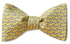 Bring some joy to the world with this happy go lucky dog motif bow tie in white, red, light blue and yellow.